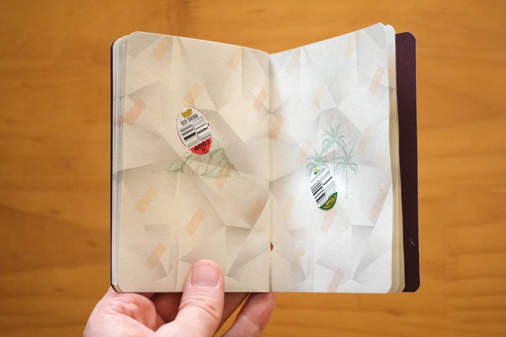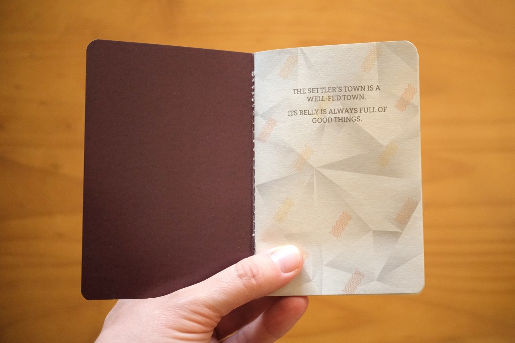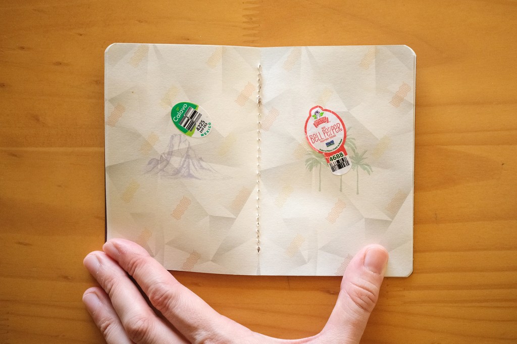The settler’s town is a well-fed town, it’s belly is always full of good things / 2024 / print book, 28 unique fruit stickers / edition of 100, numbered