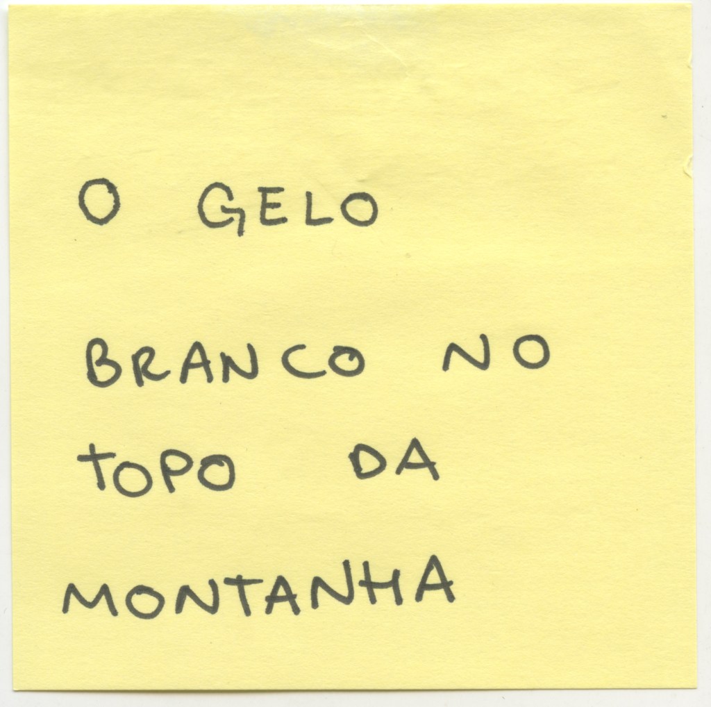 EN | Cinema without image, fragmented script and sound without editing. Composed of 46 post-its mixing notes during the residency process in Iceland and excerpts from the book A Dehumanization, by Valter Hugo Mãe (work that captivated me to visit the country). Do they meet, literature and experience? Does word unfold in image? Sound and image?