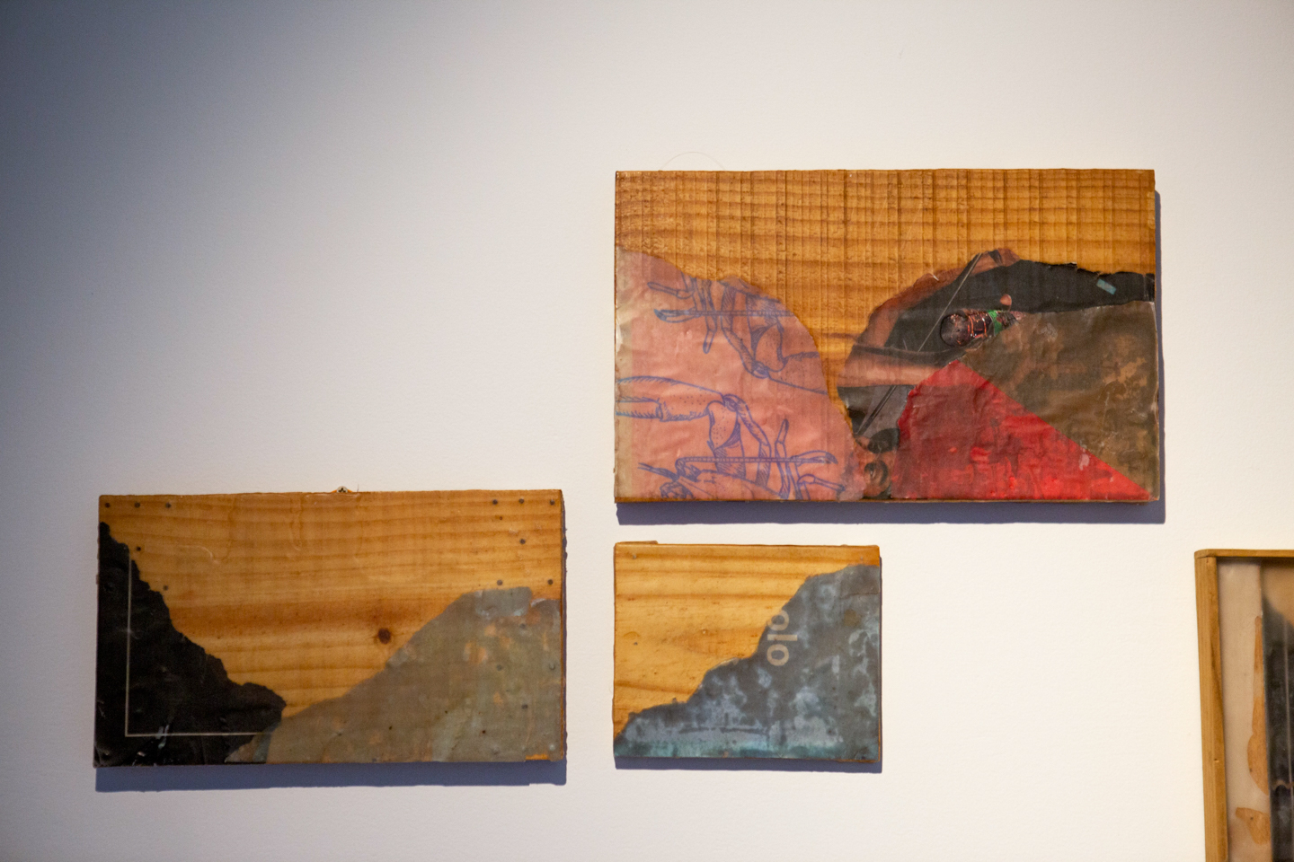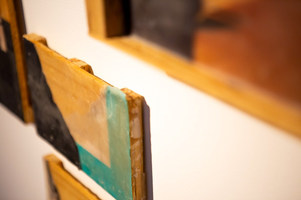 EN | Developed already in Brazil, on my return from Isafjordur, Fjöll is an attempt to recreate an Icelandic landscape through fragments of experiences. In it, I overlay papers on wooden bases with wax and paraffin. The elements here are not random: the wooden bases were from works that my father started out, and I kept them with me after his death, the papers were collected on the streets of Germany during the period I lived there, the paraffin and wax cover comes from a series of previously created objects, designed to melt.