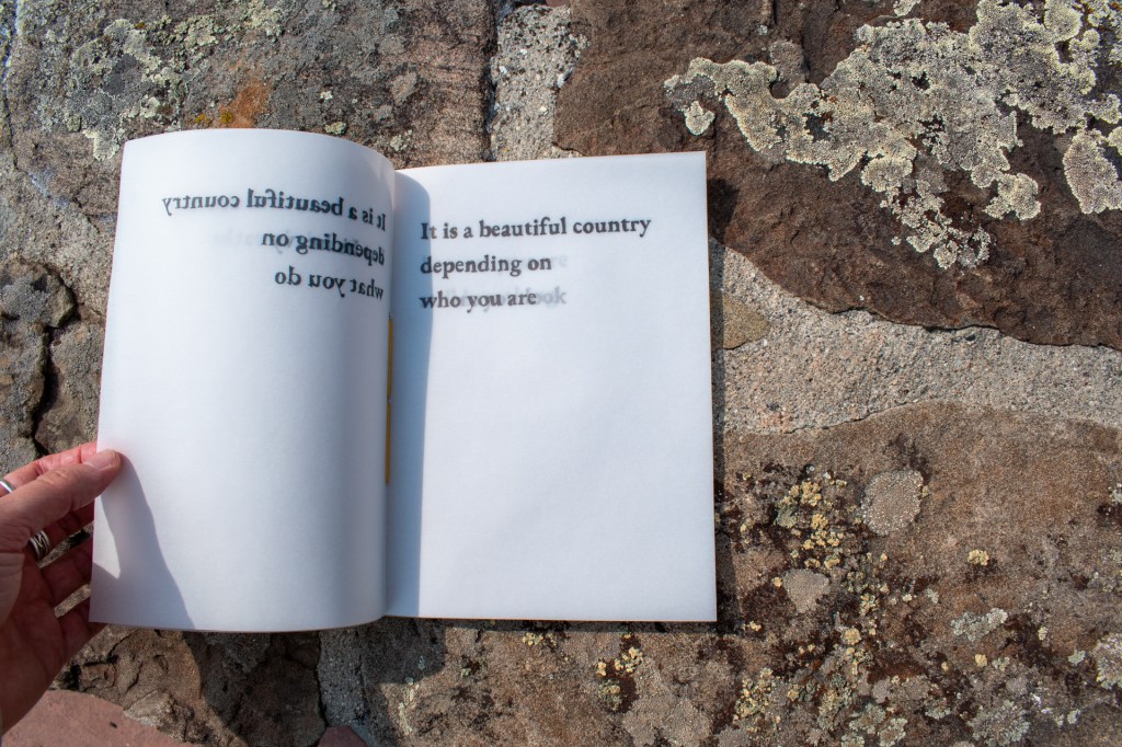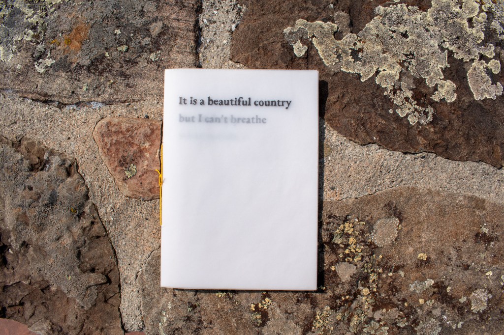 vellum paper, ink pen and yellow binding thread