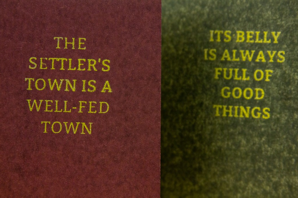 The settler’s town is a well fed town. Its belly is always full of good things., 2022.